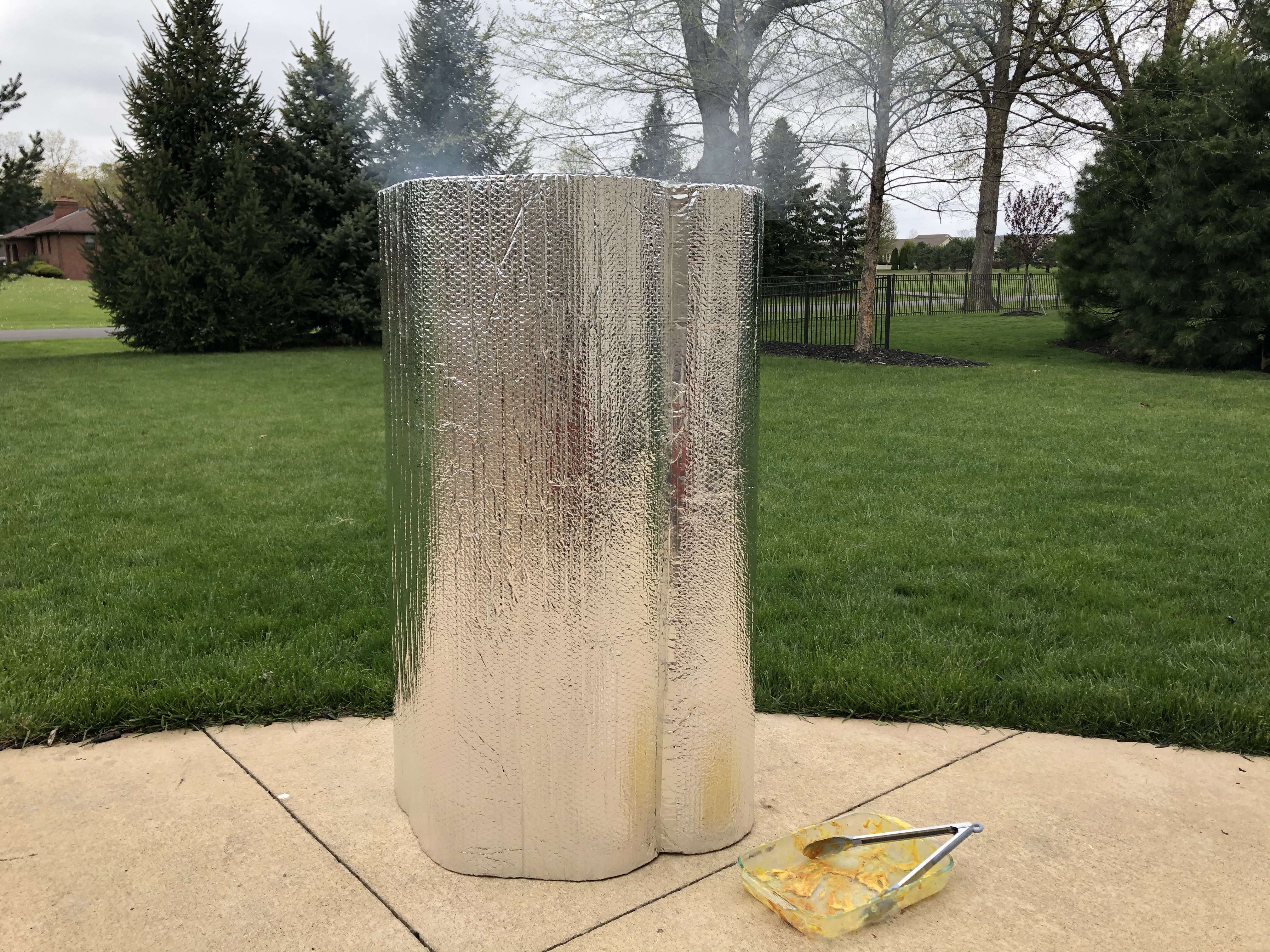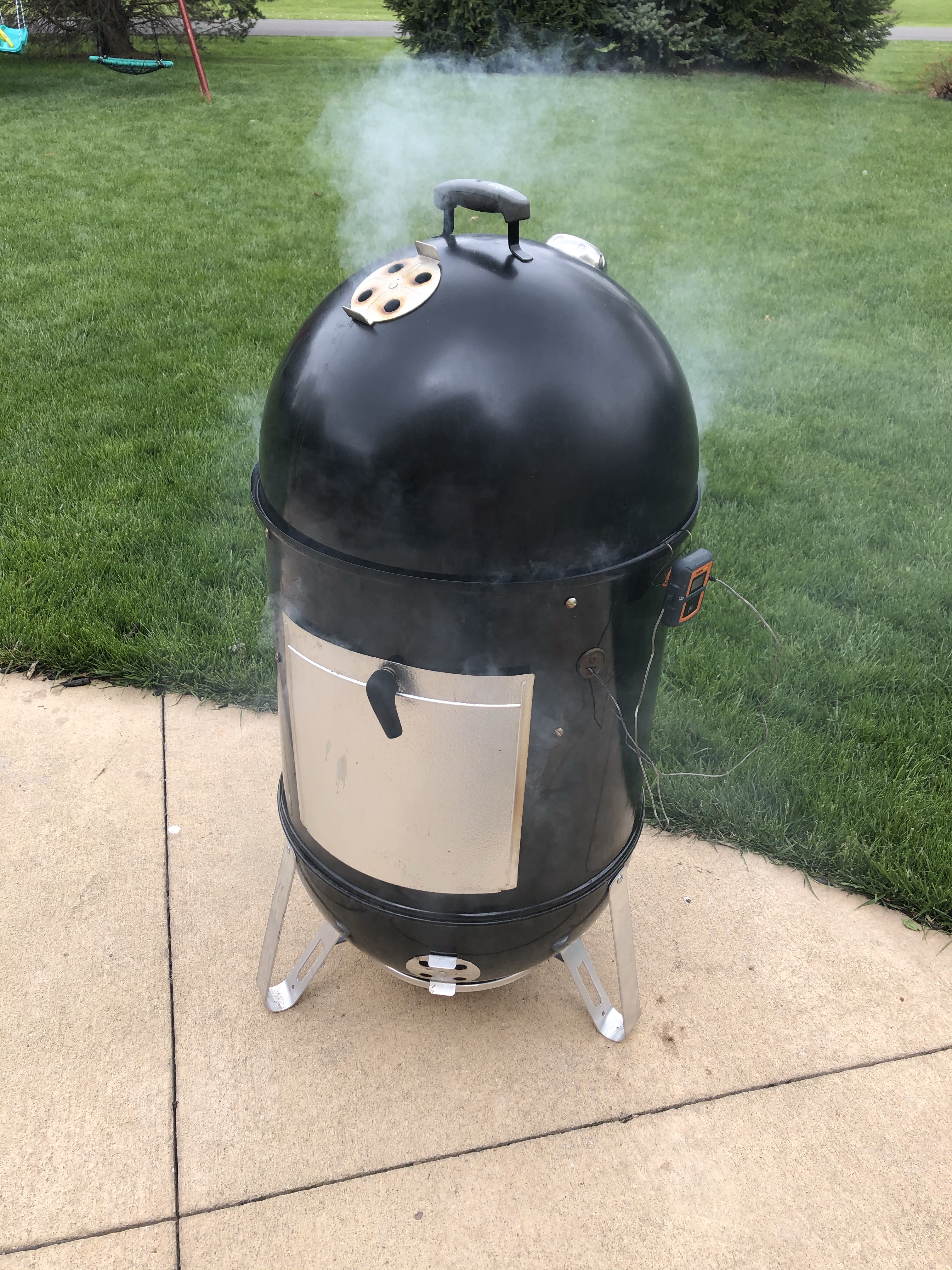 It was a windy day, so I used my homemade Reflectix wind shield. This cheap wind shield is amazing at maintaining a consistent temperature even during high wind, but on this sad day I learned its limits. As usual, I hung my ThermoPro transmitter on the outside of the grill and placed the windshield over it. This normally is not an issue for multiple low and slow smokes. This time, I lost my temperature signal 30 minutes in when the temperature was approaching 300 F. To my dismay, the ThemoPro transmitter had melted like a roasted marshmallow. In addition, the Reflectix had melted in places causing marking on the outside of the grill. Back to the drawing board for the wind shield.